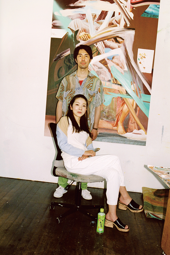 神奈川県の相模原市を拠点にする今津 景と福永大介は2000年代を代表するペインターである。ふたりの創作スタイルはまったく異なるものだが、アトリエの大きな壁に大判のキャンバスをかけ、隣あわせで椅子を並べキャンバスに絵の具を塗り重ねていく。